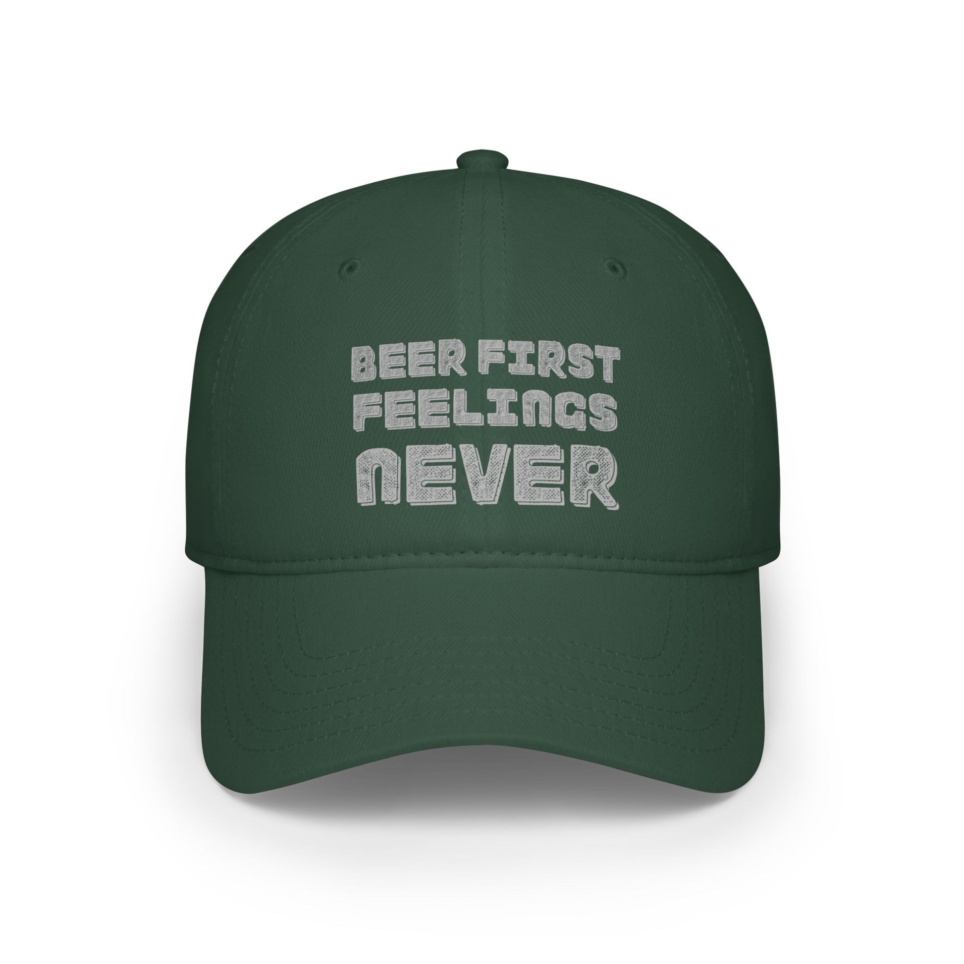 Beer First Feelings Never | Low Profile Baseball Cap for Beer Lovers | Perfect Gift for Birthdays, BBQs, and Parties