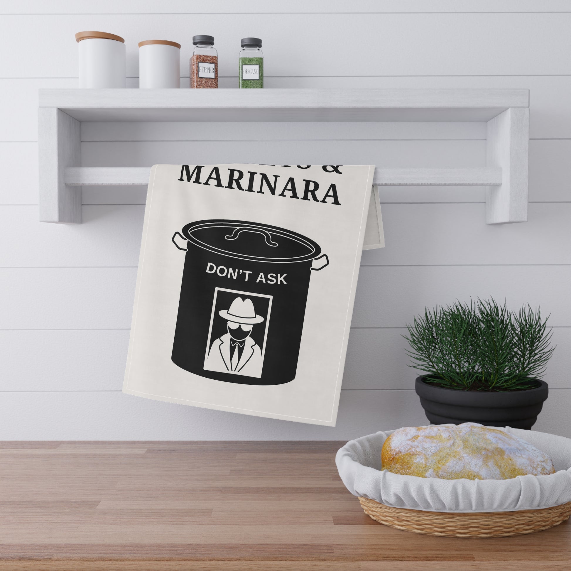 Bring a dash of sass and sauce to your kitchen with our cheeky “Our family runs on secrets & marinara” tea towel. Crafted from a high-quality cotton-poly blend, this towel is as practical as it is entertaining—ready to wipe up spills, dry dishes, or serve up laughs during dinner prep.
